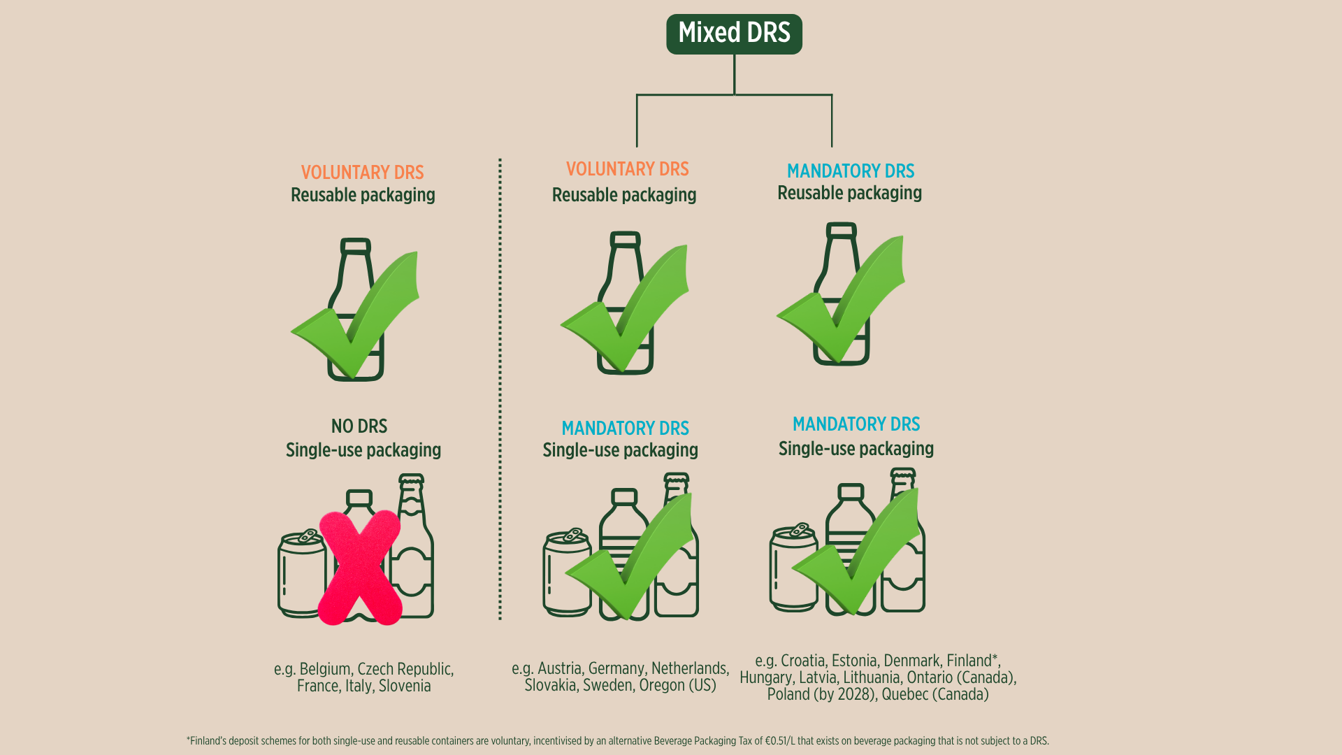 An overview of mixed deposit return systems, explaining how reuse and recycling can be integrated through shared infrastructure and system design.