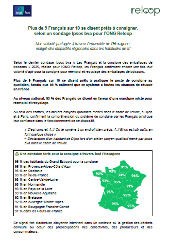 A new Ipsos BVA survey for Reloop, offers fresh insight into French attitudes towards a national deposit system.