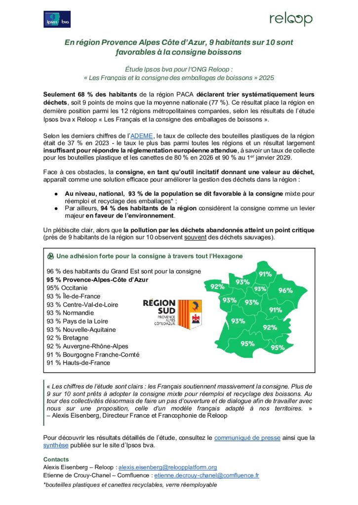 Local results from Provence Alpes Côte d’Azur, on attitudes towards deposit systems
