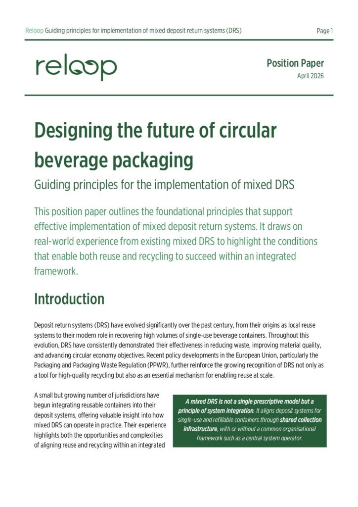effective implementation of mixed deposit return systems (DRS). It draws on real-world experience from existing mixed DRS to highlight the conditions that enable both reuse and recycling to succeed within an integrated framework.