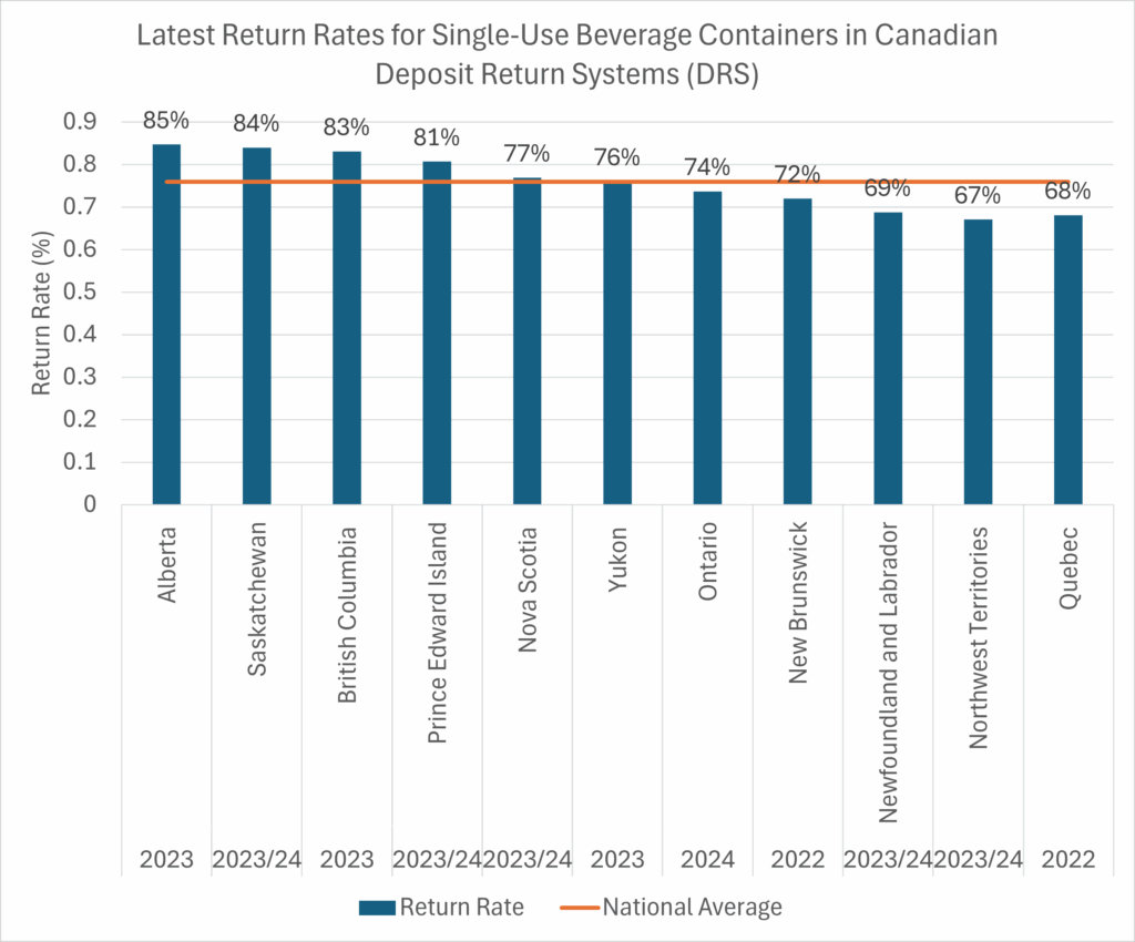 In 1970, British Columbia made history as the first jurisdiction in the world to implement a mandatory deposit return system (DRS) for single-use beverage containers. Fast forward to today and nearly every province and territory in Canada has implemented a DRS, a collection system designed to incentivise recycling by adding a refundable deposit to the price of beverage containers, which can be redeemed by consumers when they return empty containers to designated collection points.