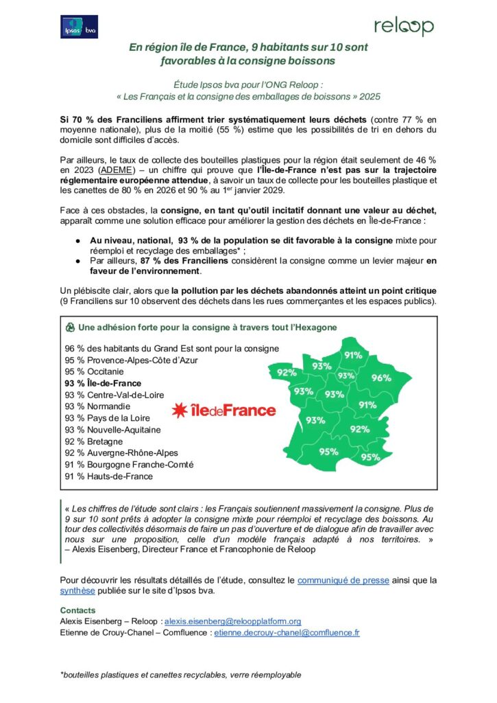 Regional results from the Reloop survey on attitudes towards deposit systems in France.
